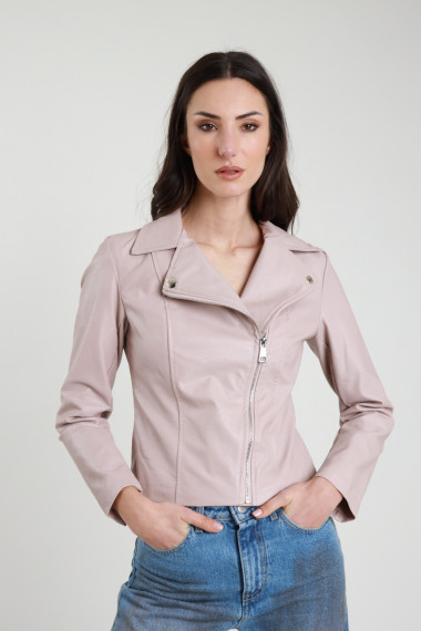 Chiodo Corto in Ecopelle con Chiusura a Zip.