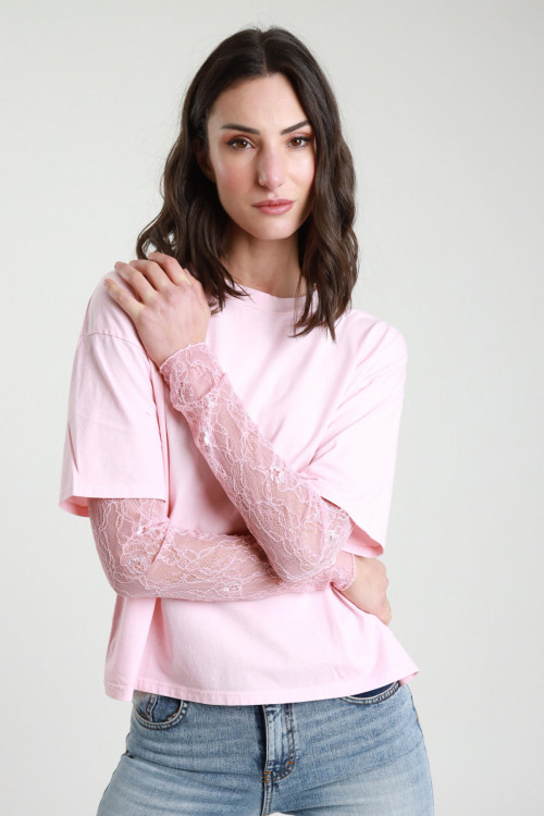 T-shirt Maniche Corte in Pizzo.