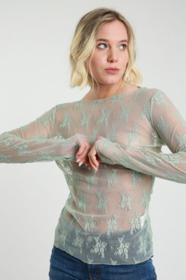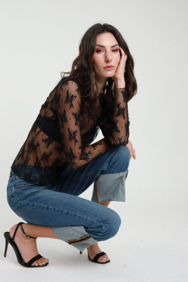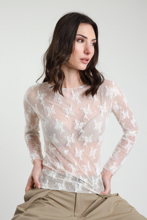 T-Shirt Maniche Lunghe in Pizzo