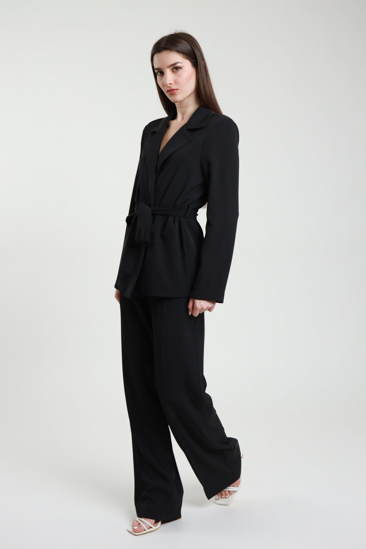 Complete consisting of blazer without pockets with passers -by and flake in waist + wide leg pants and side pockets. 96%PL 4%ea