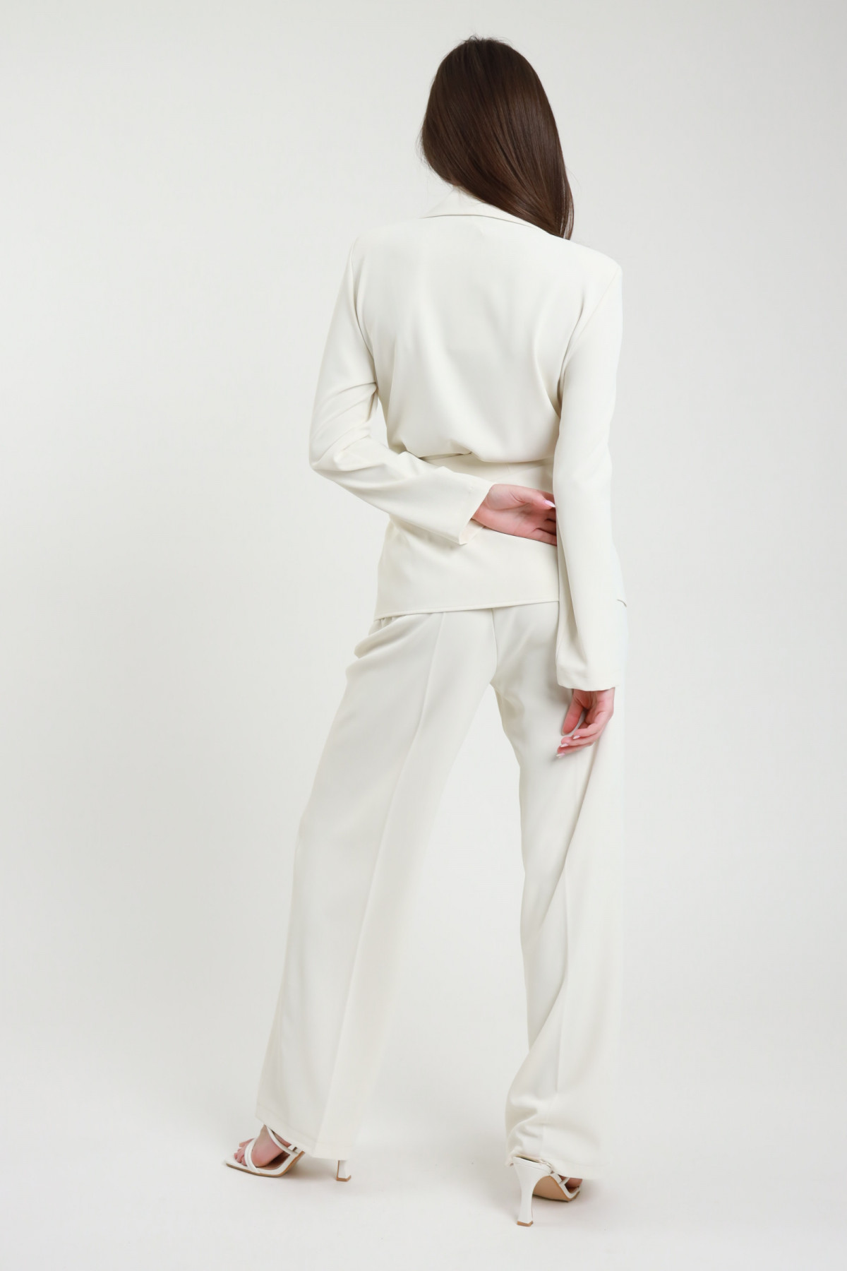 Complete consisting of blazer without pockets with passers -by and flake in waist + wide leg pants and side pockets. 96%PL 4%ea