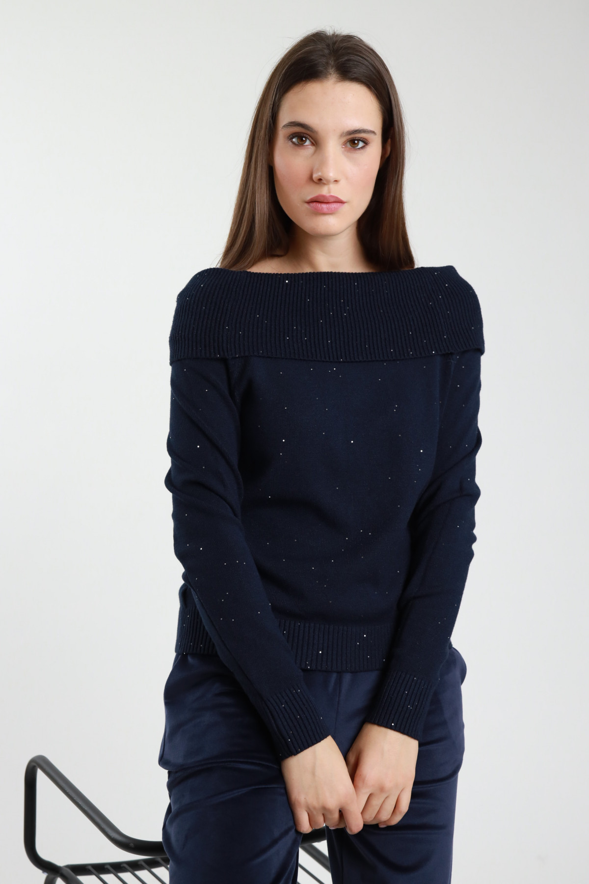 Maglia con Cappuccio e Dettaglio Tessuto Micro Paillettes.