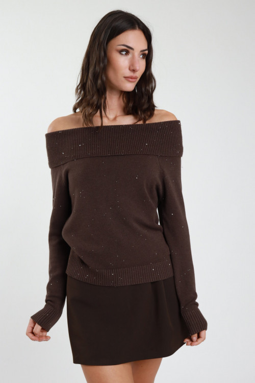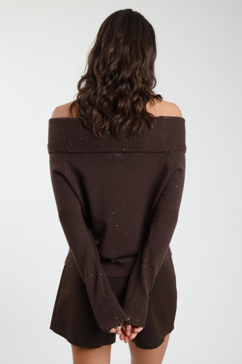 Maglia con Cappuccio e Dettaglio Tessuto Micro Paillettes.