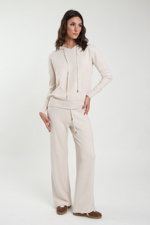 Cardigan Over in Maglia con Cappuccio e Tasche Laterali. Chiusura Bottoni.