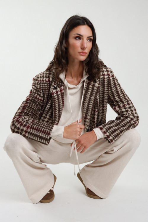 Oversized jacket in Prince of Wales pattern. 80%pl 20%wo+100%pl