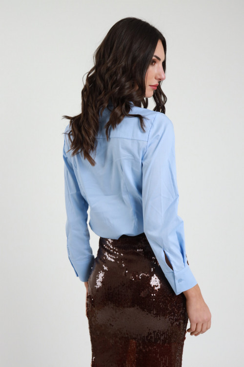 Camicia Slim Elasticizzata con Dettaglio Bottone Gioiello.