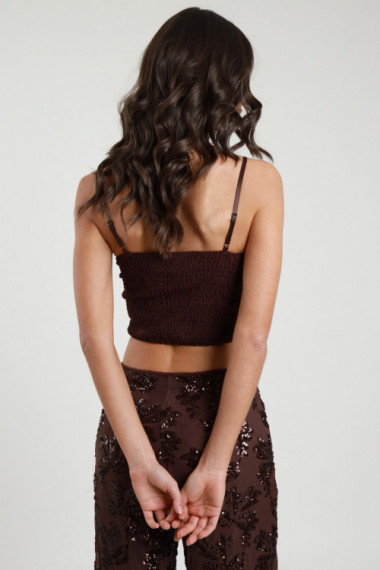 Oberer Satin mit verstellbaren Gurten, elastisch auf der Rückseite, Spitze am Boden und Ausschnitt. 100%pl