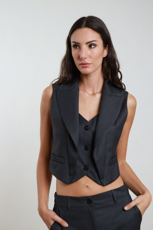 CROP vest with classic Rever, three -button closure and fake side pockets. 62%PL 35%VI 3%EA+98%PL 2%ea