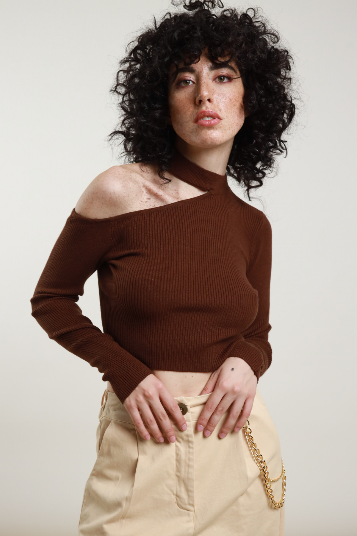 Slim crop shirt with cut-out on the shoulder. 49%VI 30%PL 21%NY