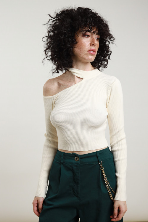 Slim crop shirt with cut-out on the shoulder. 49%VI 30%PL 21%NY