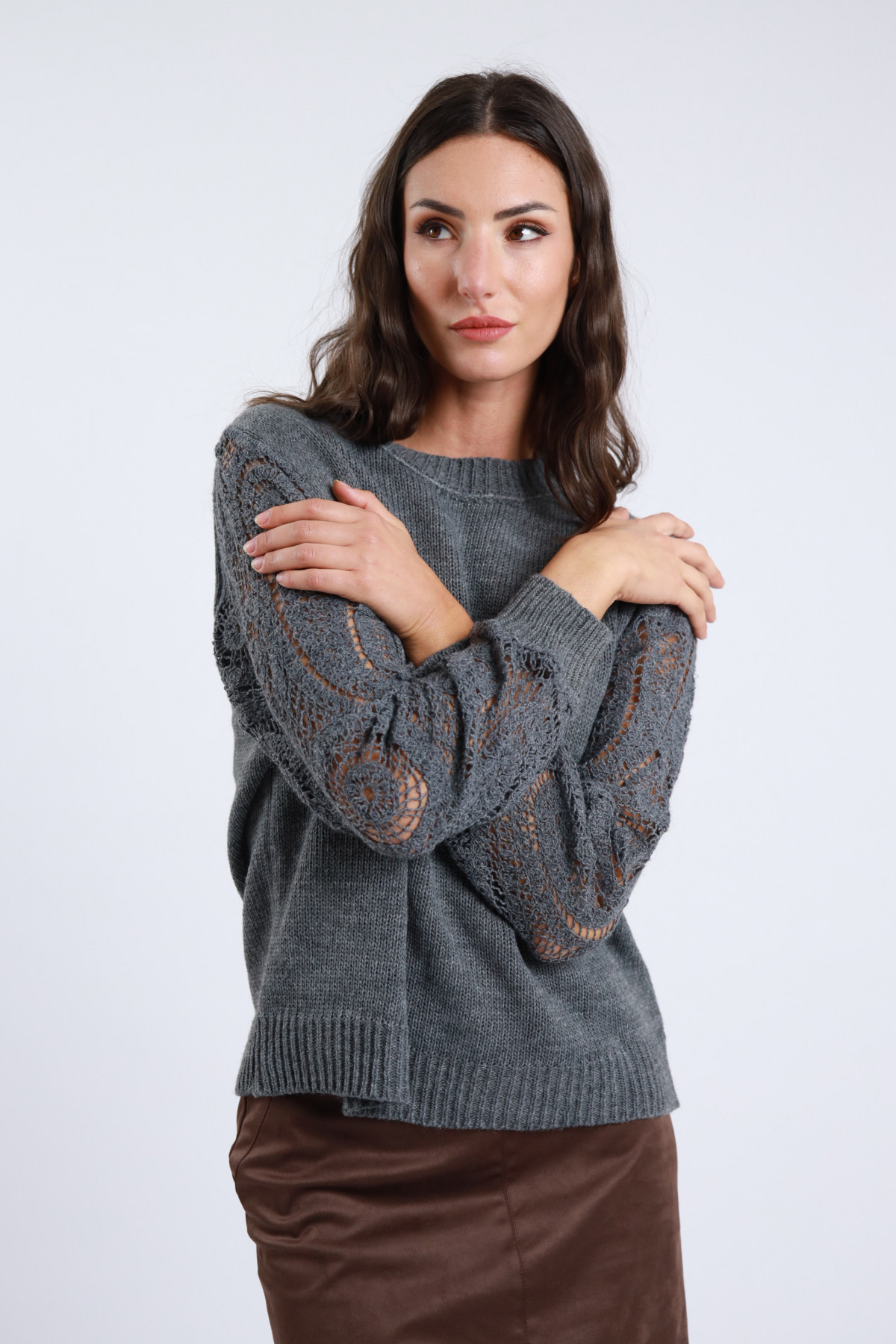 Climbing shirt with lapped sleeves in crochet. Ribbed hems. 75%PC 10%WO 10%VI 5%WP