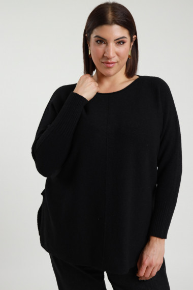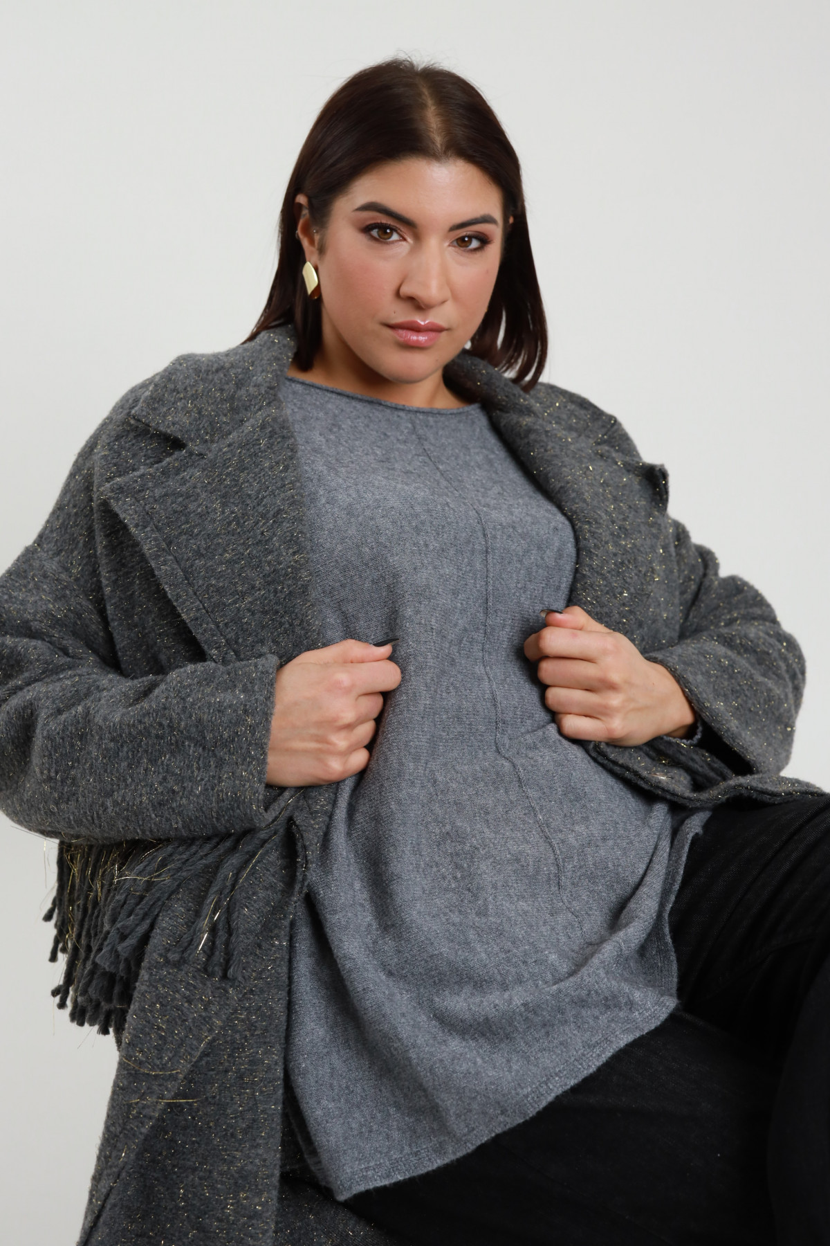 Langes Fellimitat mit Kapuze und Clip-Knopfverschluss. Seitentaschen – Curvy Susy Star-Linie. 100%pl