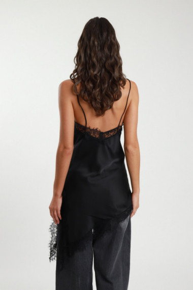 Viscose satin dress with V -neckline and lace closure with crossroads. 100%VI