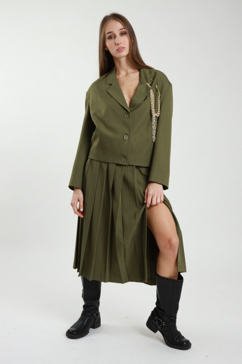 Single -breasted jacket, square cut, padded straps, elastic on the bomber effect back, attached pins. 96%PL 4%EA+100%PL
