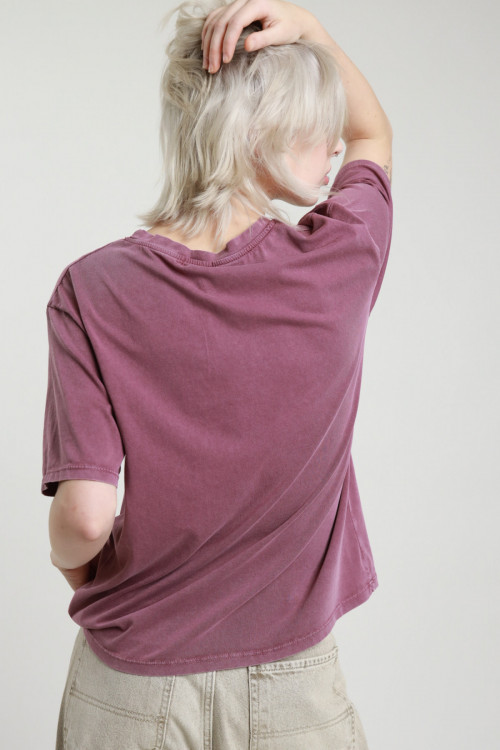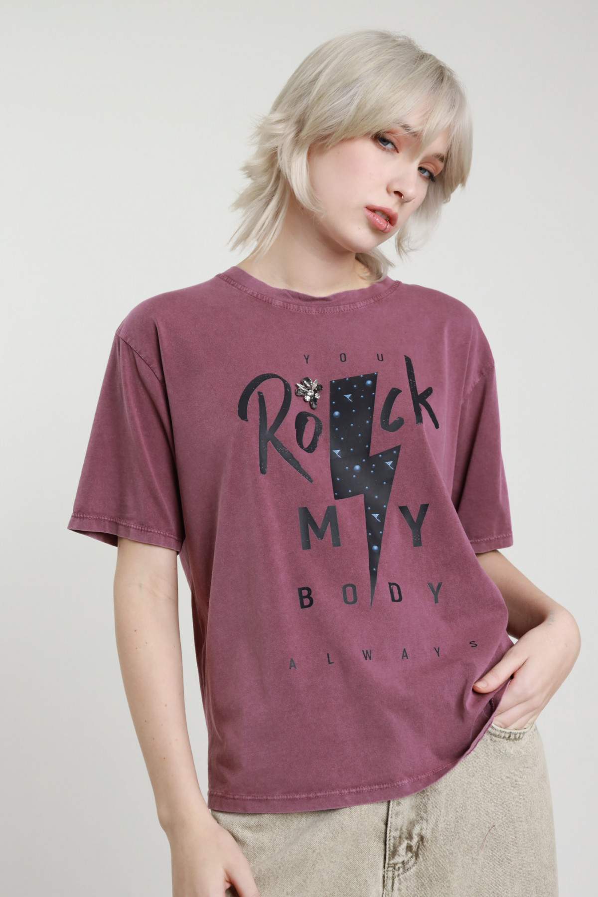 T-Shirt in Cotone Elasticizzato Effetto Slavata, Girocollo con Dettaglio Borchie.