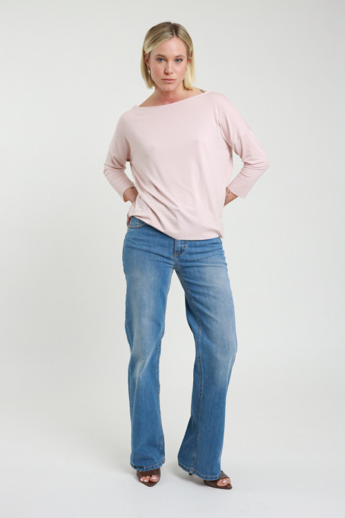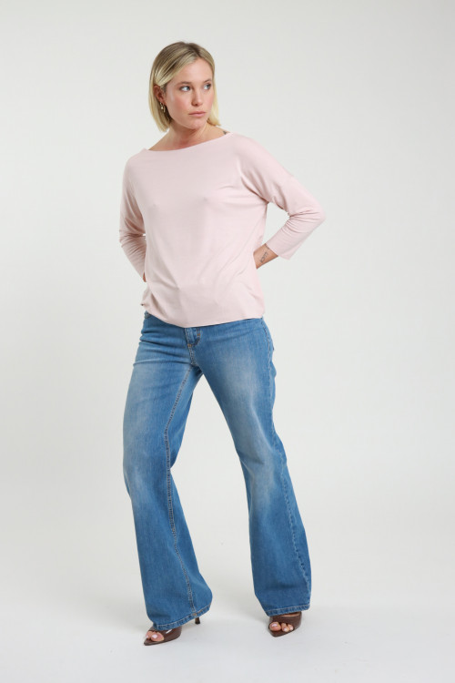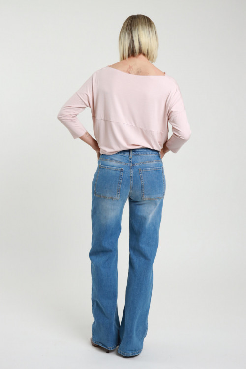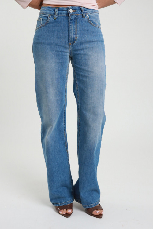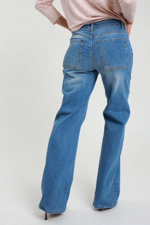 Flare Jeans in Stretch Cotton, Light Marbled Wash, Flap Pockets on the Back. 98%co 2%ea