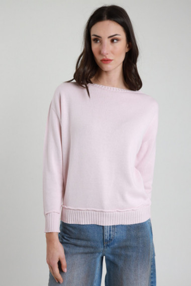 Maglia Scollo Barchetta, Bordi A Trama. Regular Fit. 100%co