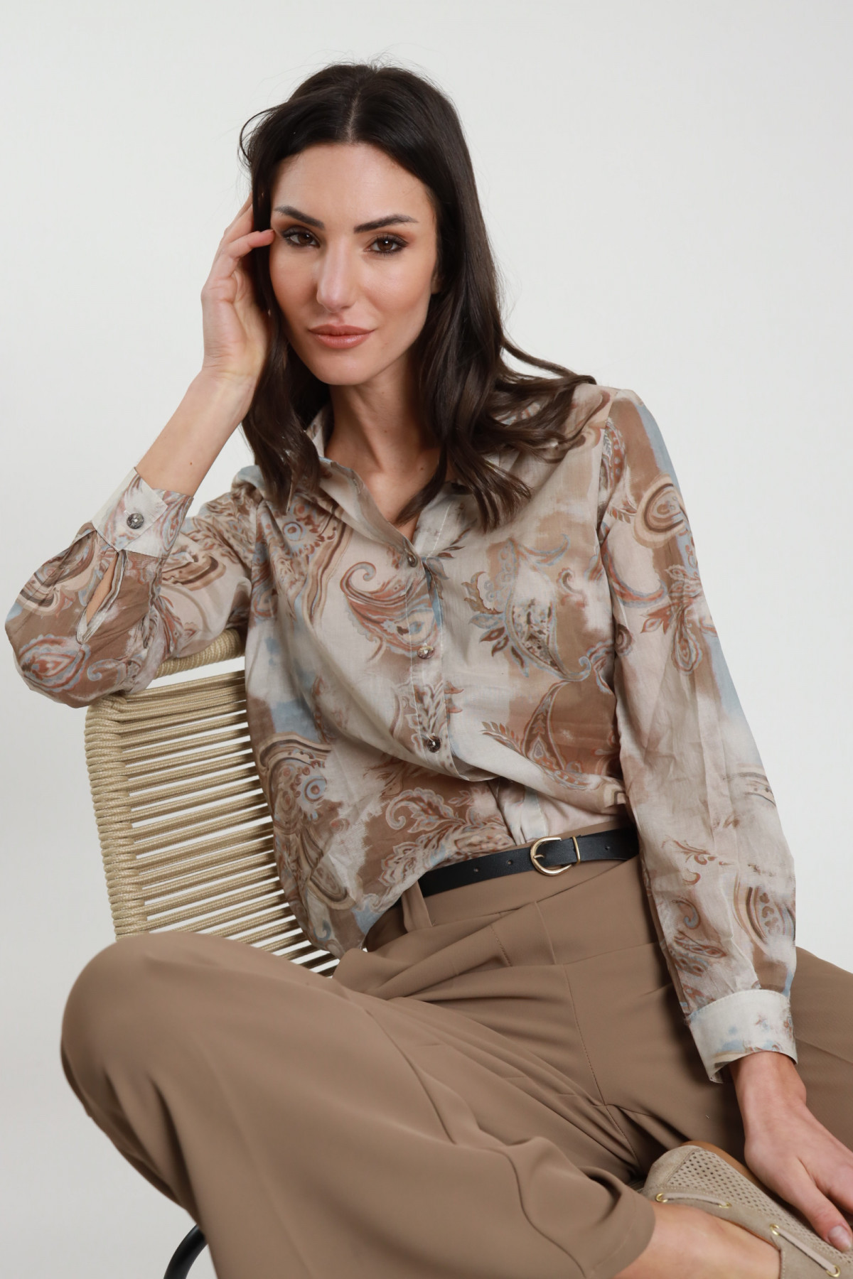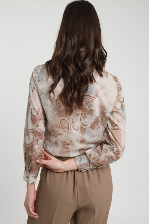 Camicia Semitrasparente con Rouches sui Polsi in Fantasia Floreale.