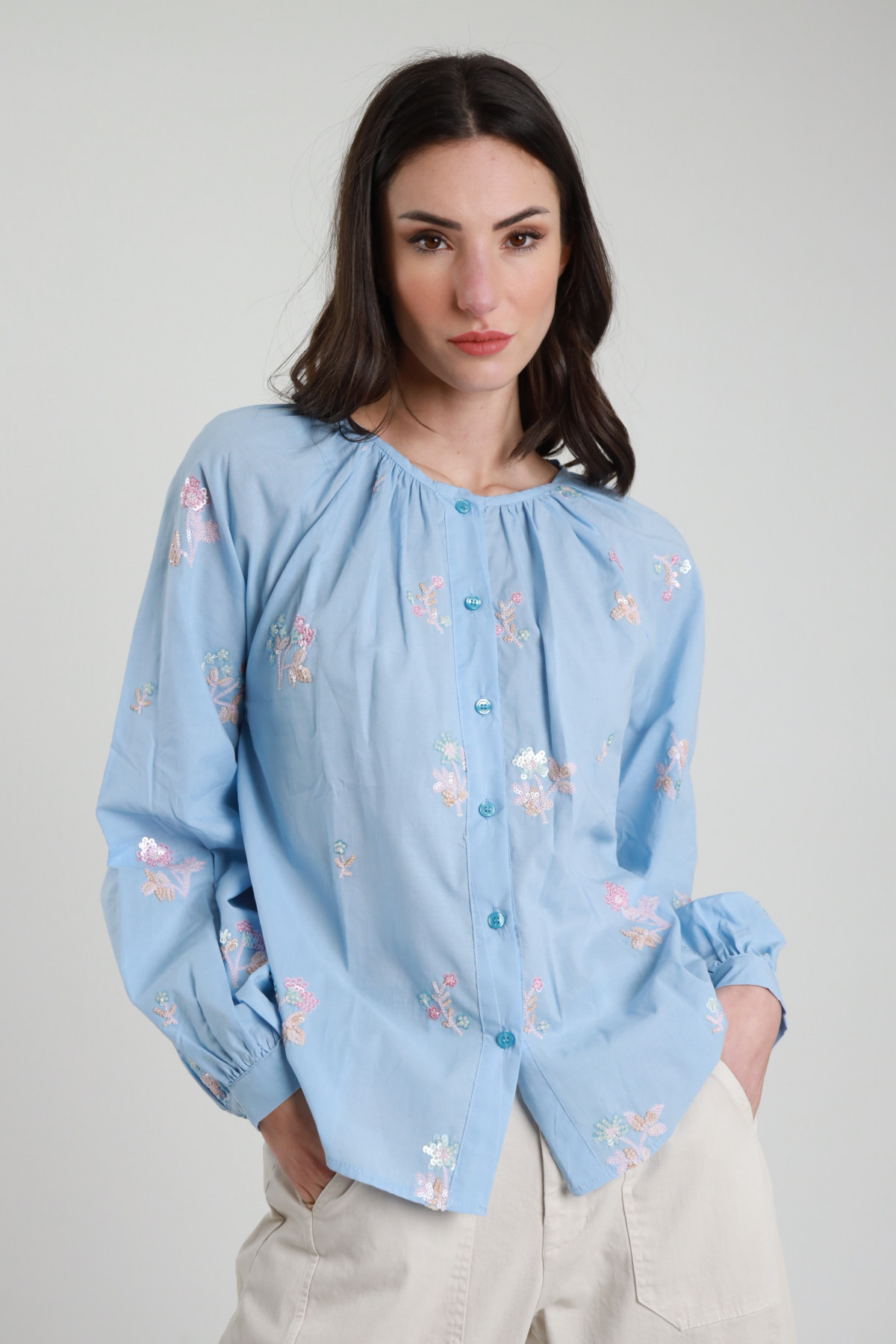Korean Shirt With Mini Embroidered Flowers. Sleeves and Soft Fit. 100% co