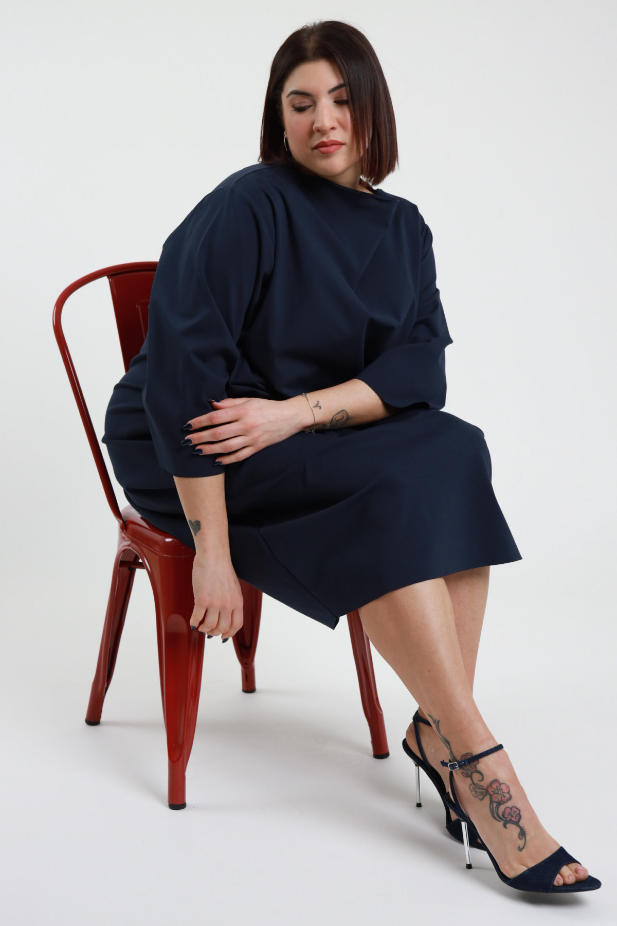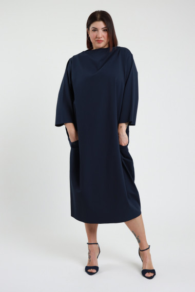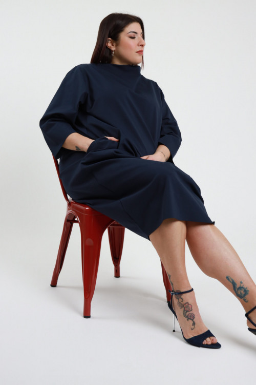 Oval cut dress, Milan stitch, soft high neckline, dropped shoulder, 3/4 sleeves - Curvy Susy Star line. 52%co 40%pa 8%ea