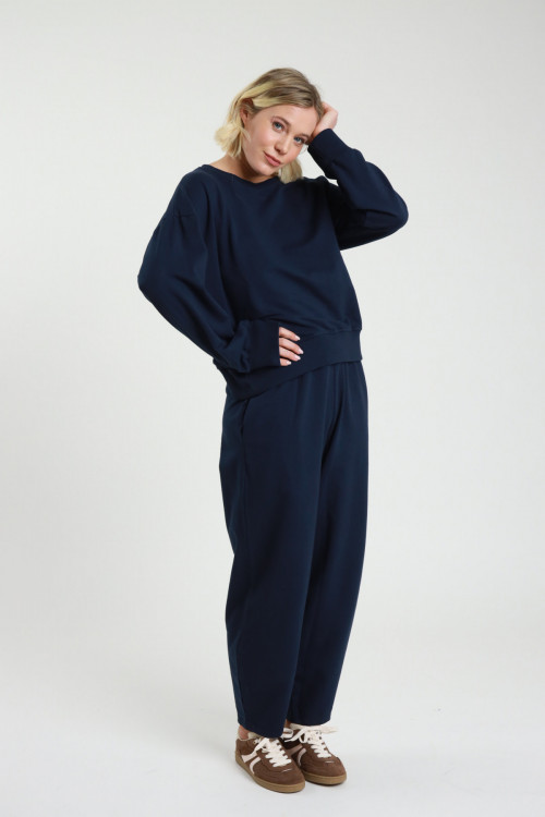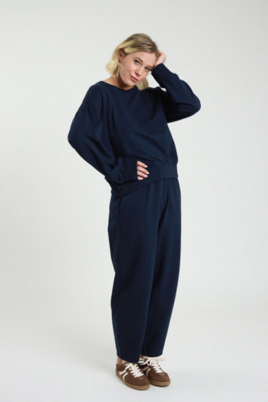 Pantalone Ovetto Over, Tasconi Sul Fronte, Cintura Con Gioiellino Stellina. 100%co