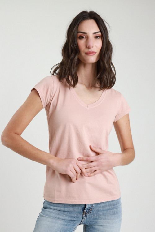 Half-sleeved T-Shirt with V-neck, in Cotton. 100% co