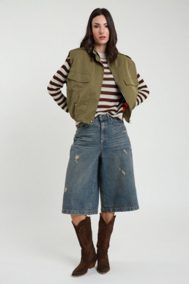 Bermuda Over in Denim, Sandblasted wash and tears, Zip and button closure. 100%co