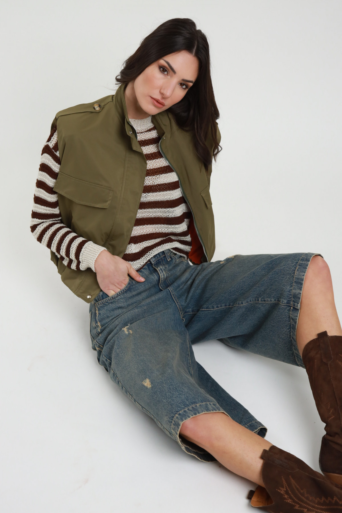 Sleeveless Bomber Jacket with Big Pockets and Orange Interior, Zip Closure and Clip Buttons. 100%pl