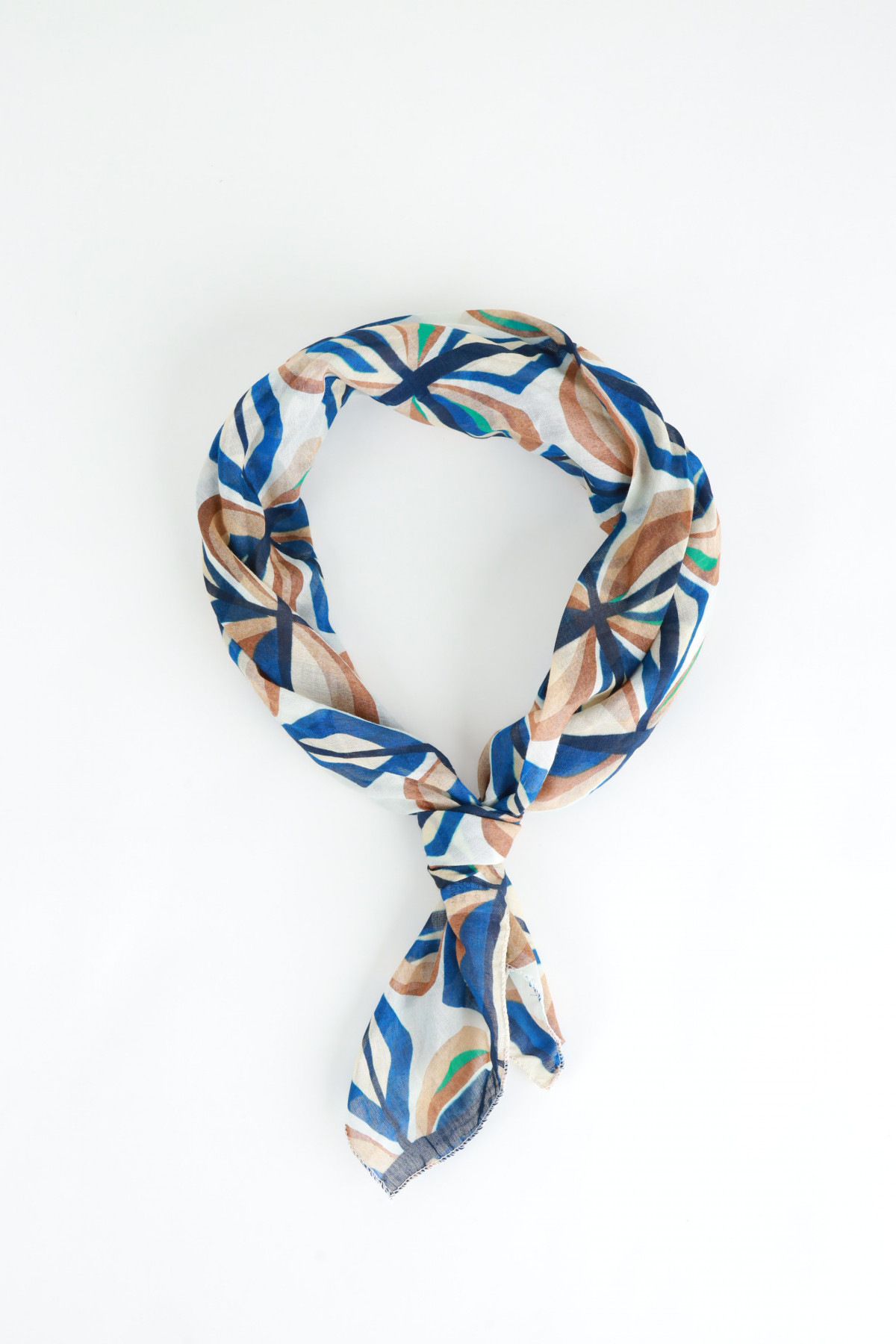 Short scarf in cotton and silk, geometric pattern. 80%co 20%se