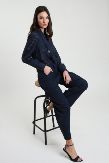 Banana trousers with large pockets, zip and button closure and waist belt. 100%co