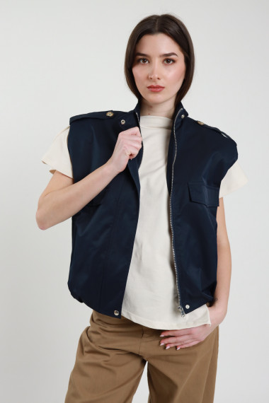 Sleeveless Bomber Jacket with Big Pockets and Orange Interior, Zip Closure and Clip Buttons. 100%pl