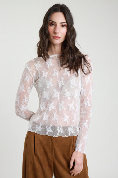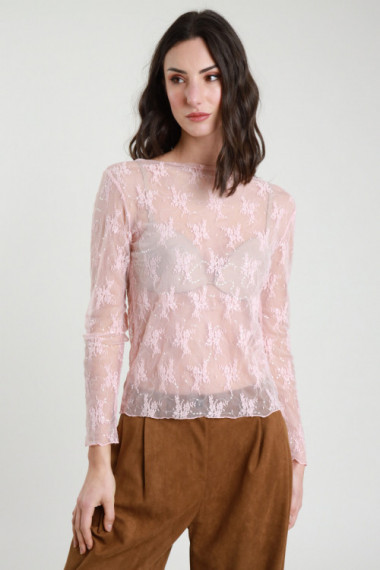 Rundhals-Oberteil mit halben Ärmeln in Pillettes-Optik. 95 % pl 5 % ea + 95 % vi 5 % ea