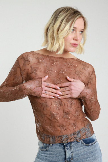 Geripptes Lurex-Crop-Top mit quadratischem Ausschnitt. 90 %vi 8 %fm 2 %ea