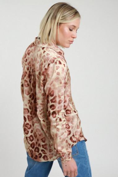 Mandarin-neck shirt in striped cotton with embroidered flower detail. 100%co