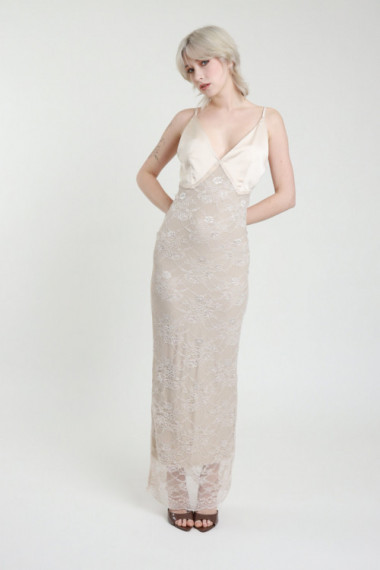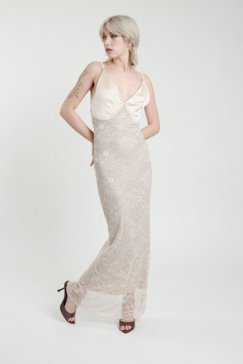 Abito lungo raso + pizzo 100%pa+100%pl+95%vi 5%ea