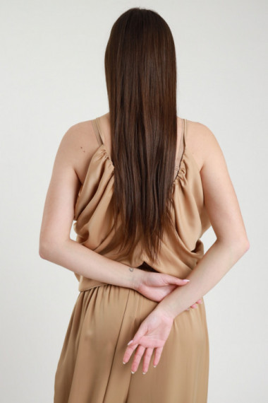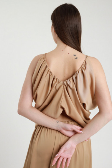 Draped Crop Top with Thin Straps and V-Neck. 100%pl