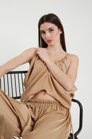 2 Pocket Trousers, Balloon Model, Satin Effect with Drawstring at the Ankles and Elastic Waist. 100%pl