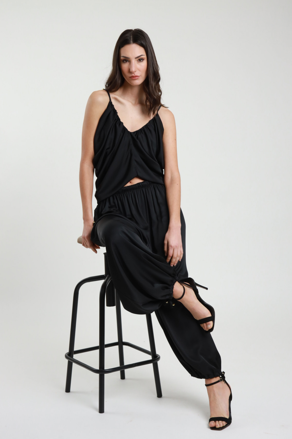 Complete Sleeveless Top with Side Gathering and Palazzo Pants with Pleats. 96%pl 4%ea