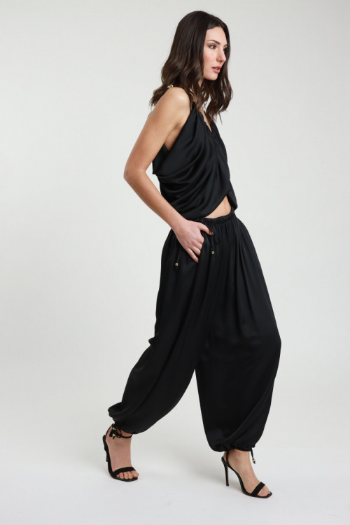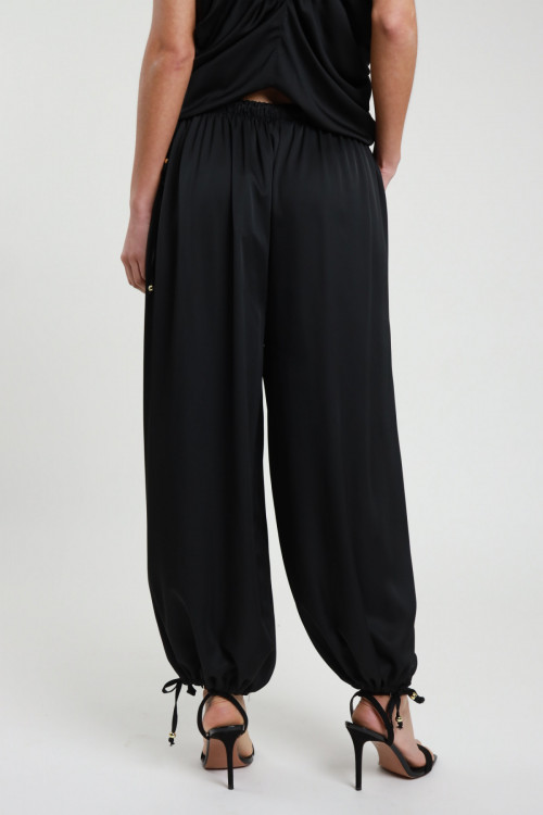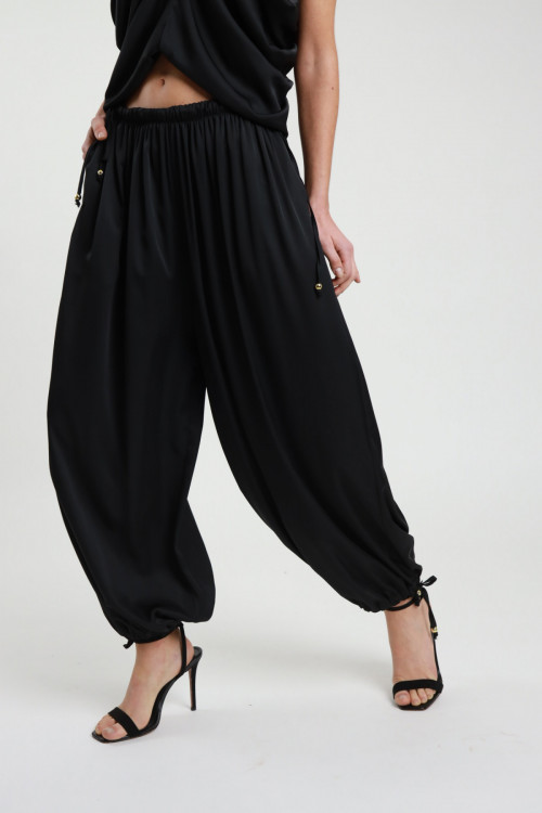 2 Pocket Trousers, Balloon Model, Satin Effect with Drawstring at the Ankles and Elastic Waist. 100%pl