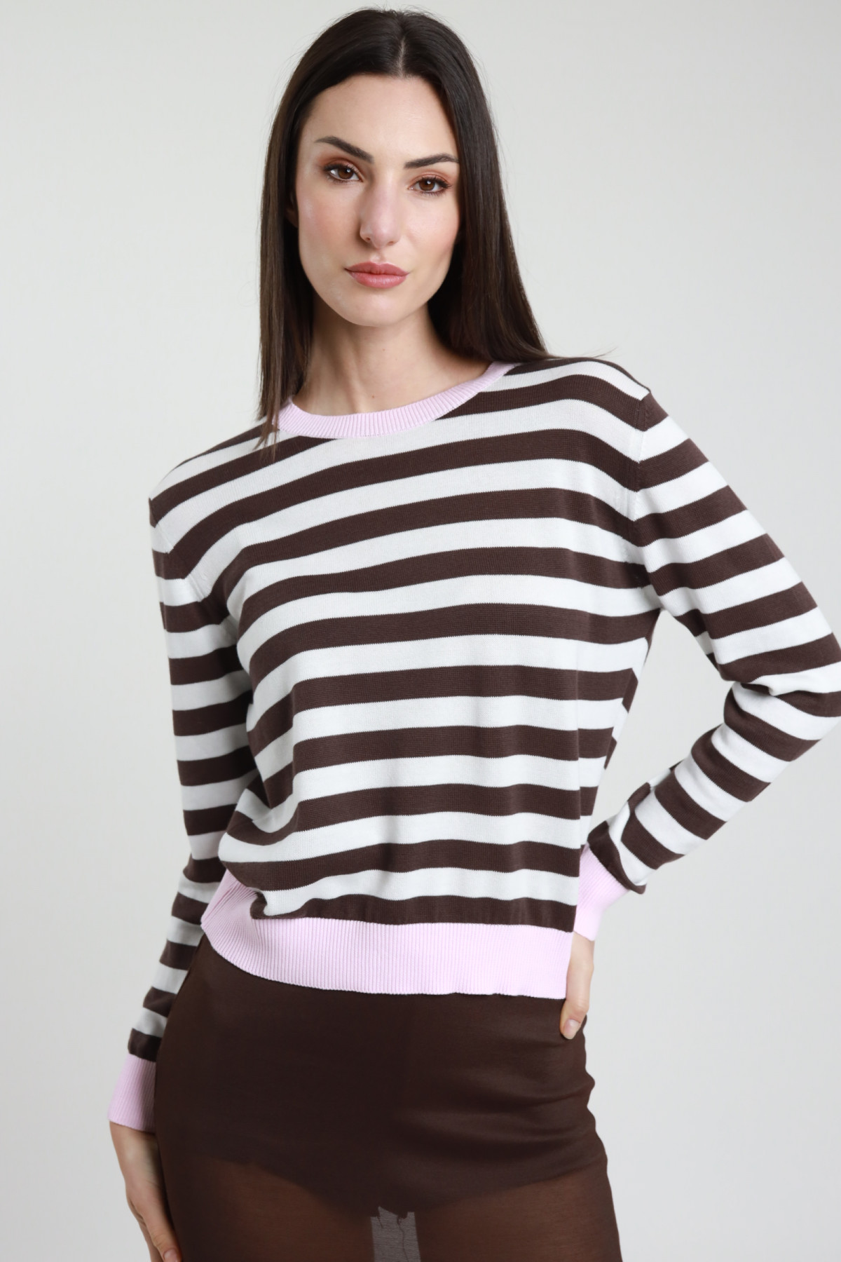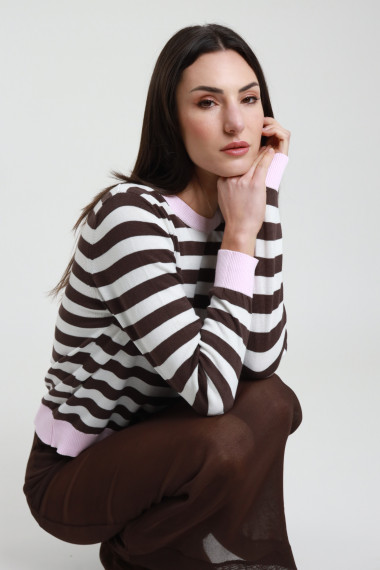 Long-sleeved cotton shirt in striped pattern with contrasting edges. 100%co