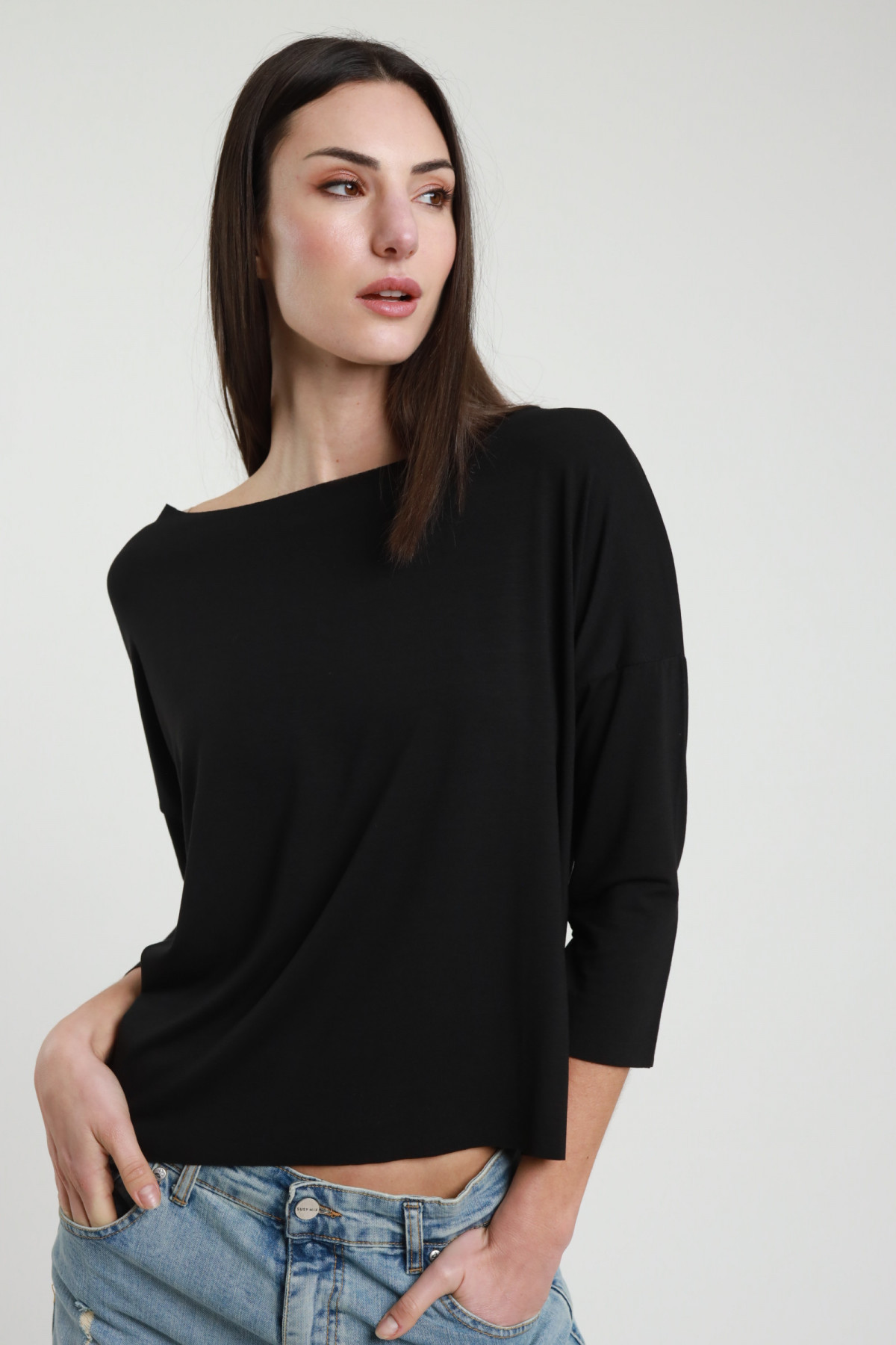 Kimono T-Shirt with 3/4 Sleeves in Stretch Viscose. 94%vi 6%ea