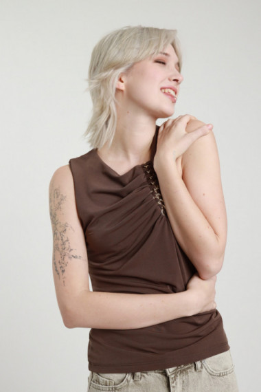 Tank top with asymmetrical straps, jewel on the front that forms curls. Slim Fit. 95%pl 5%ea