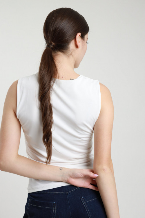 Tank top with asymmetrical straps, jewel on the front that forms curls. Slim Fit. 95%pl 5%ea