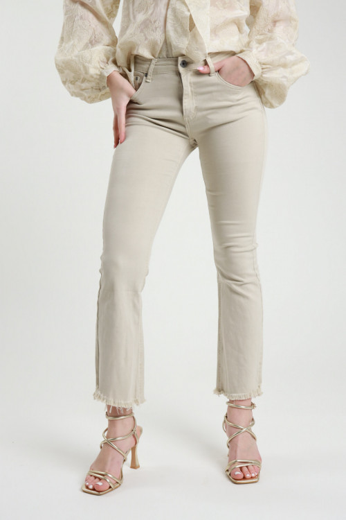 Elastische, eiförmige Hose mit mittlerer Taille, 2 Taschen, Reißverschluss und Knopfverschluss. 61%co 36%pa 3%ea
