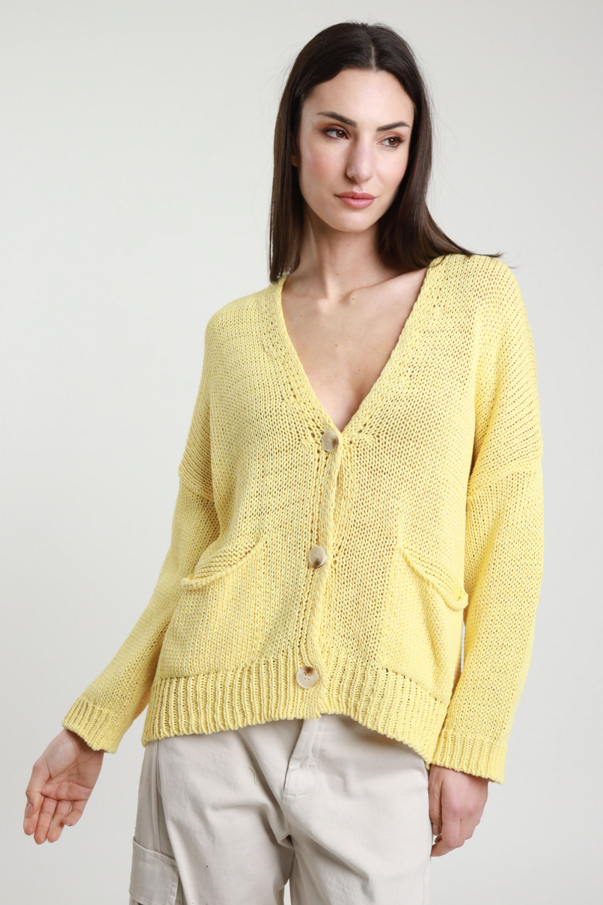 Cardigan Scollo V Ampio, Tessuto A Trama, Bottoncini A Pressione. 75%vi 25%pa