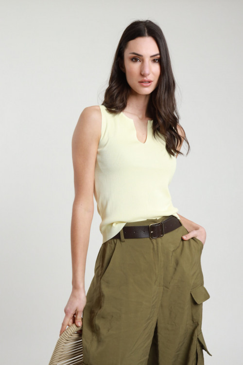 Canotta Canettata Con Scollo Tondo e Spalline Strette, Borchiette In Strass Apllicate. 95%co 5%ea