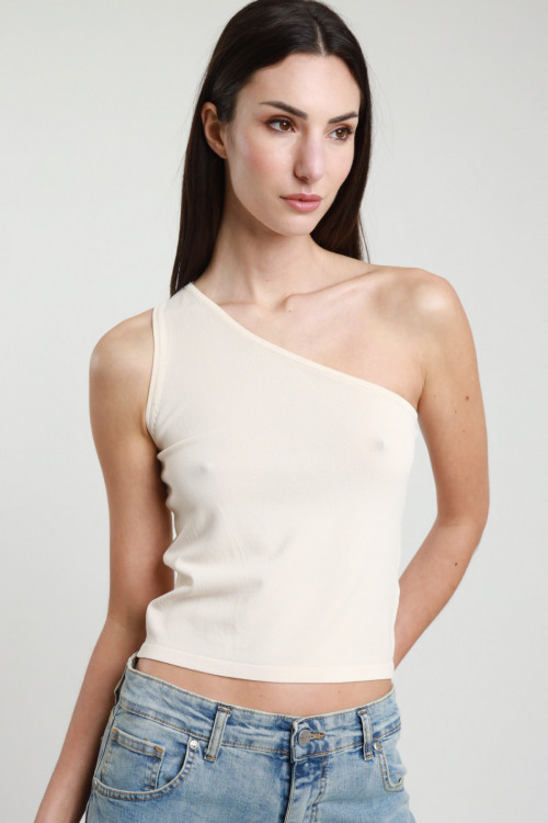 Canotta Canettata Con Scollo Tondo e Spalline Strette, Borchiette In Strass Apllicate. 95%co 5%ea