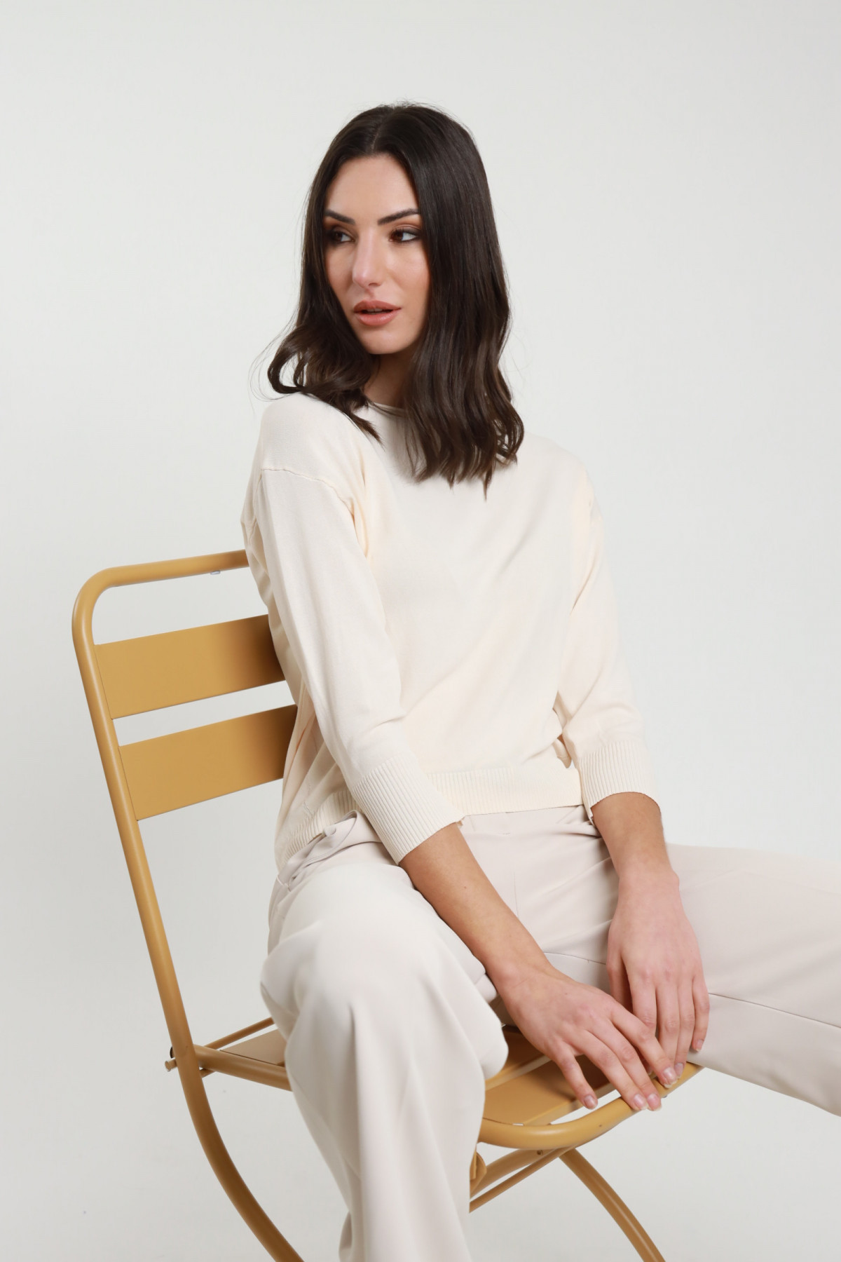 Pullover im Vollstrick, leichter U-Boot-Ausschnitt mit Seitenschlitzen. 100 % co