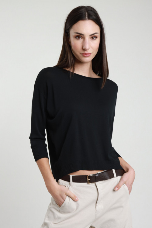 Pullover im Vollstrick, leichter U-Boot-Ausschnitt mit Seitenschlitzen. 100 % co