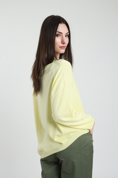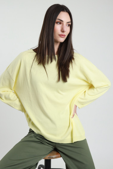 Maglia Rigata in Viscosa + Dettagli Bordi a Costine in Lurex.
